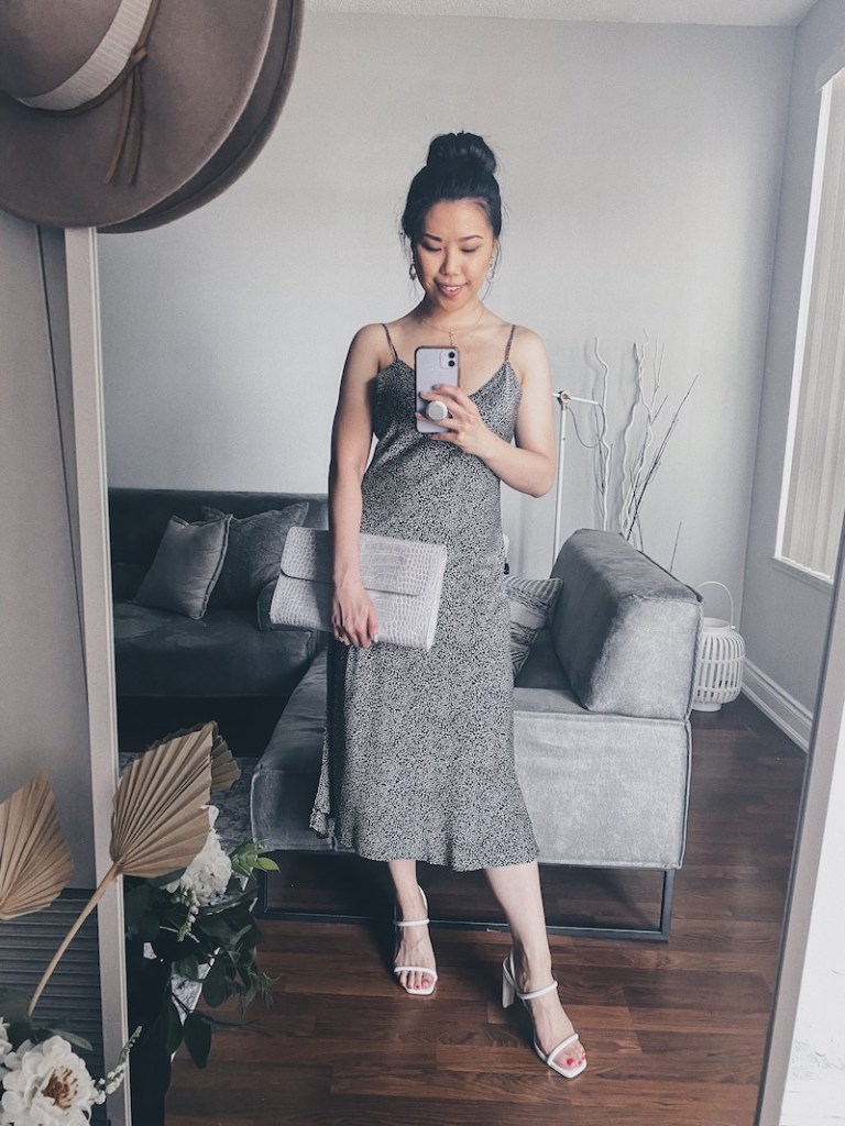 I’ve always loved the look of a simple satin slip dress but it has taken me a while to find the right one. A lot of them are pretty but they’re not versatile enough. I really liked this A&F Satin Slip Dress when I came across it. The shape of the neckline is flattering with a slit on the side. The satin material is also great quality that’s double layered. I bought both the black pattern as well as the light coral in size small regular. I think I could have done the petite but it was sold out and I wasn’t sure whether the slit would be higher than it already is in the regular. My torso is long so I thought for this style, the regular would work best. Also, something to note is that there’s no zipper so I’d take that into consideration when buying the dress although I’m mostly a size small at A&F. It’s currently on sale from $99 to $45 + 25% off (was 15% off but now it’s an even better deal!). Such a great price for the quality that you’re getting. I styled this dress in 3 different ways to show how versatile it is.
