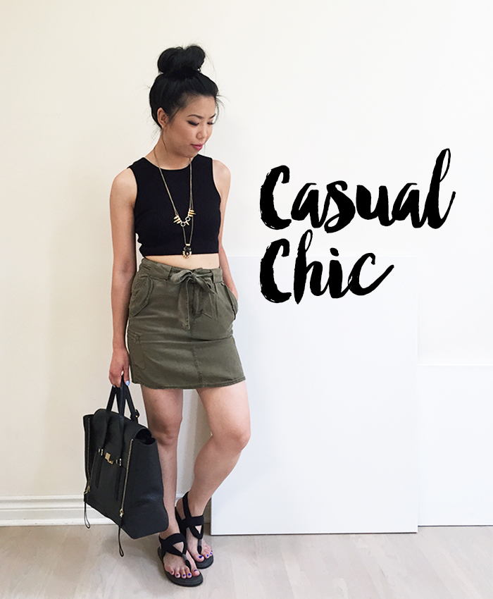 I love pieces that are great on their own and also versatile enough to transition from season to season. That is why I am obsessed with this Forever 21 Crinkled Surplice Romper in Olive for only $19.90! It comes in 3 colours – all neutrals! The peach colour may be a little too light for my complexion but I would definitely pick up the black one as well (if they restock)! The lightweight material makes it easy to layer pieces over and under the romper without making it feel too frumpy. I sported this piece with tights and tall boots at the Ever New Spring Preview (post will go up next week!) since it’s still a bit chilly but when it warms up, I’ll rock it with strappy sandals and open toe shoes!